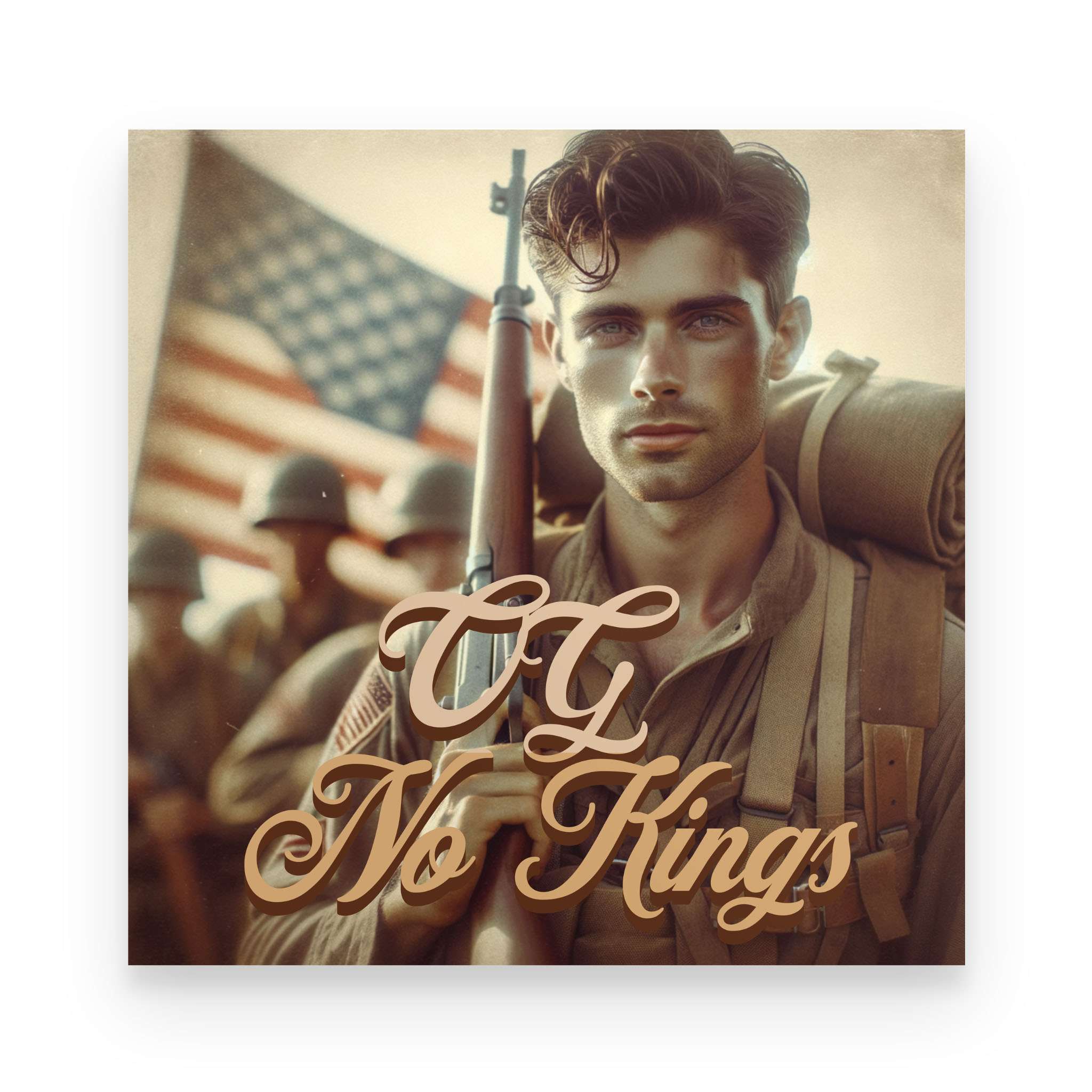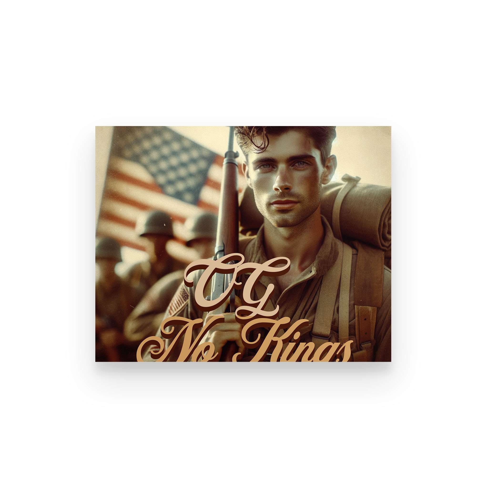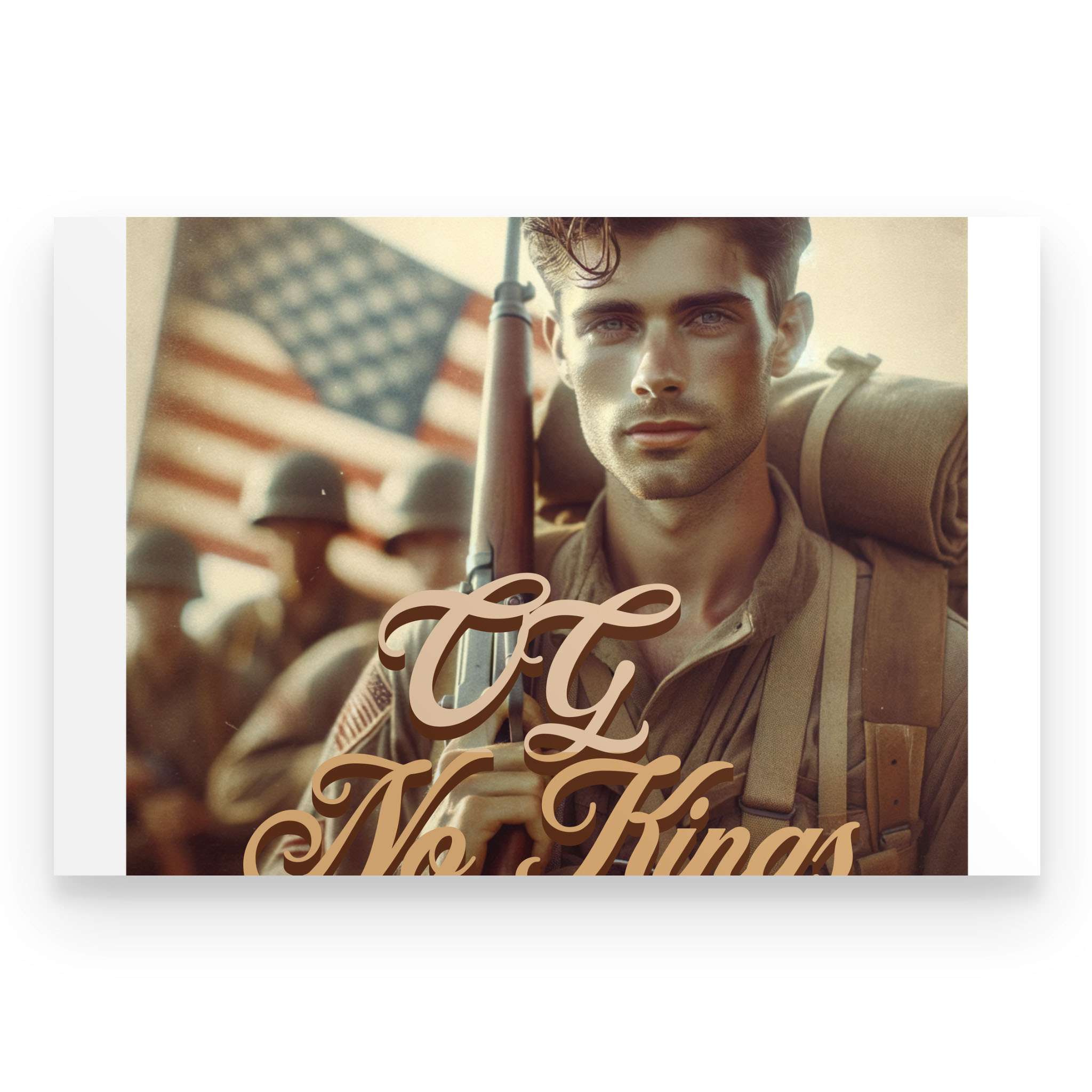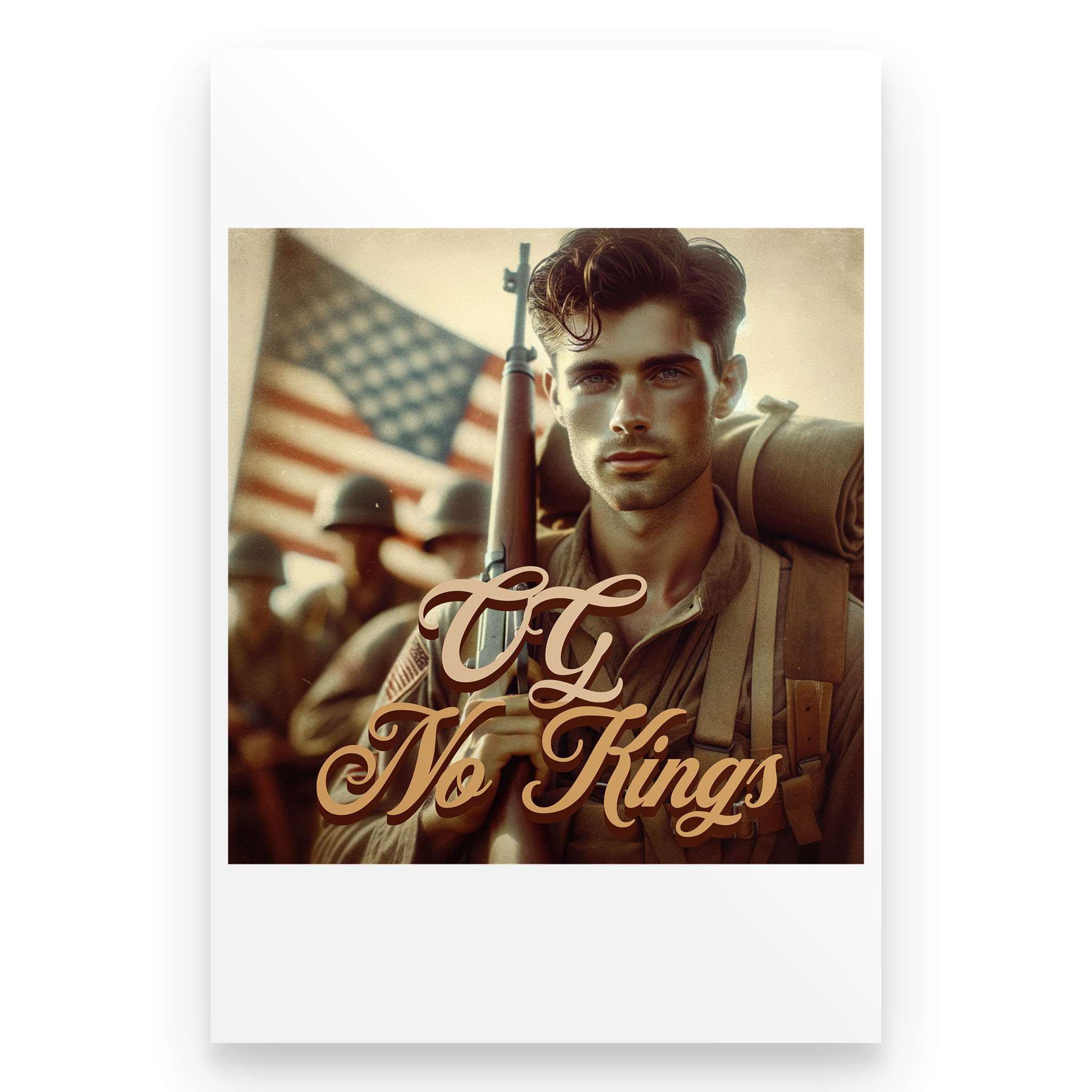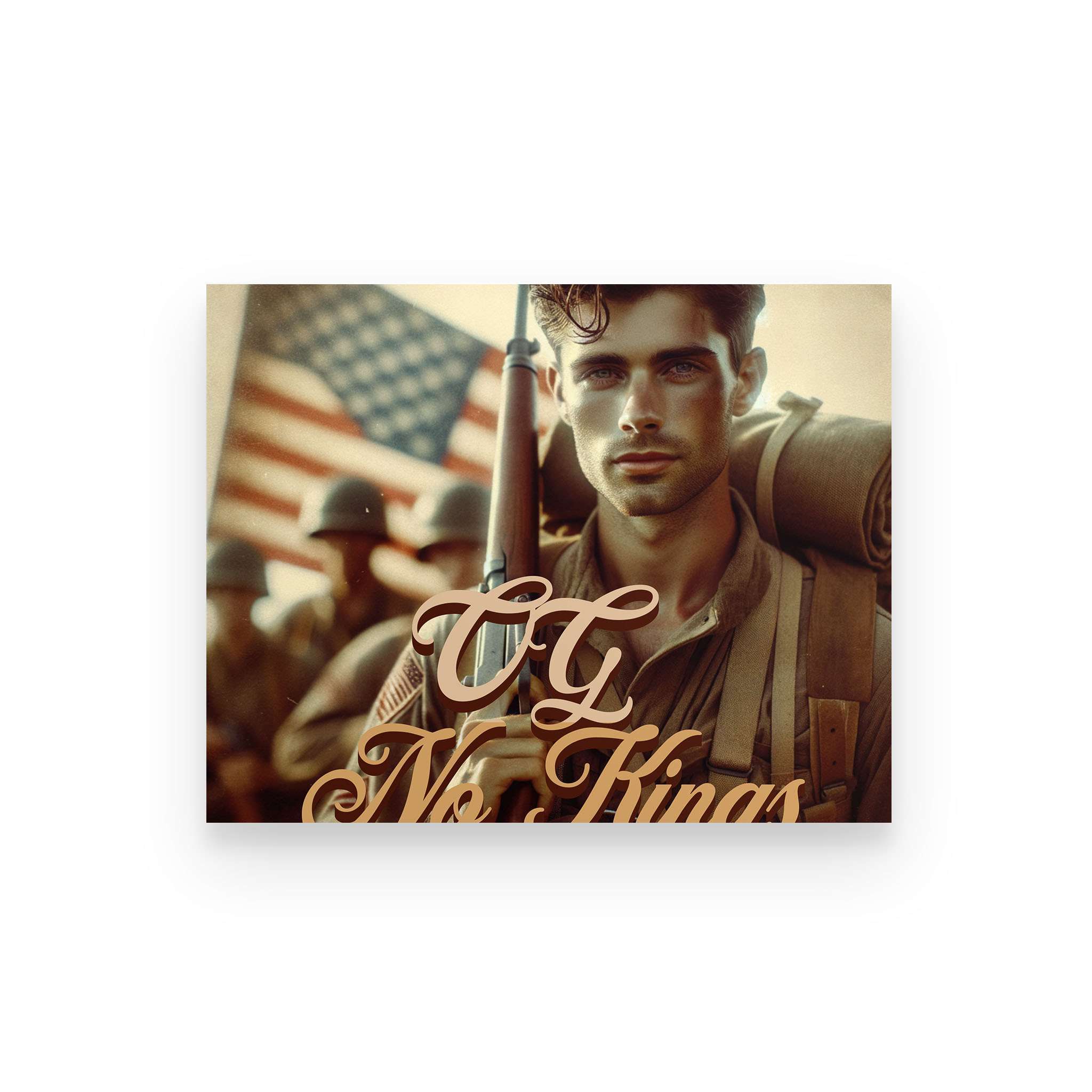 The OG No Kings Poster is a bold, full-color tribute to the ones who bled for a country without crowns—and the generations still refusing to bow. Featuring the revolutionary soldier clutching the Constitution or the WWII vet marching home from fire and ash, this piece is more than décor. It’s a proclamation.