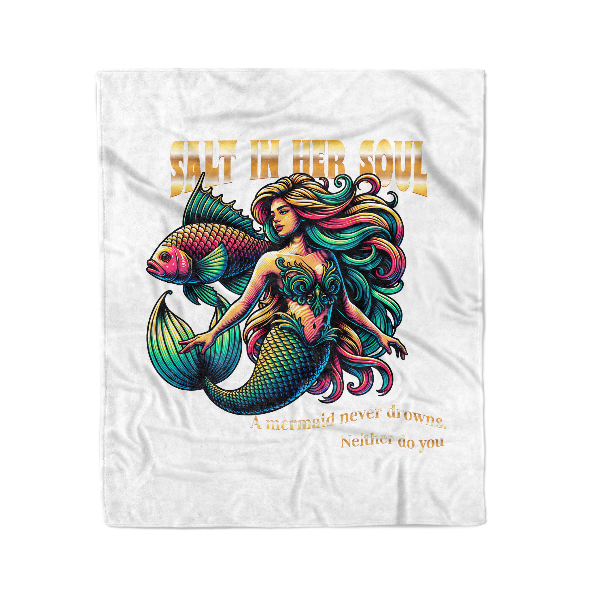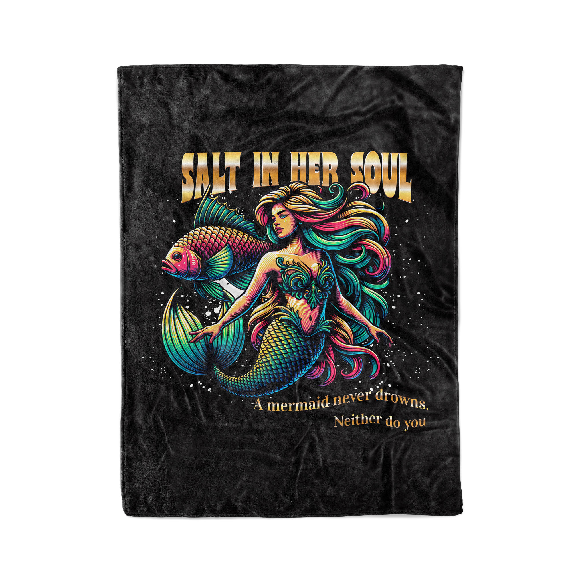The Salty Mermaid Fleece Blanket is a sea-spun sanctuary for the soul that swims deep and dreams wild. Emblazoned with the mantra A mermaid never drowns. Neither do you, this plush, velvety blanket offers more than warmth—it offers armor made of softness.